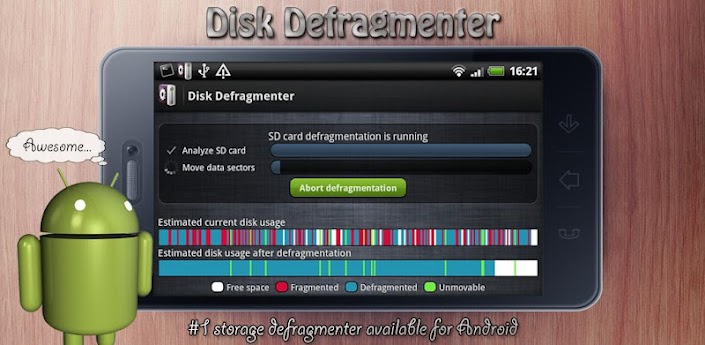 Overview: Disk Defragmenter for Android. Increase your phone performance by defragmenting your SD card.